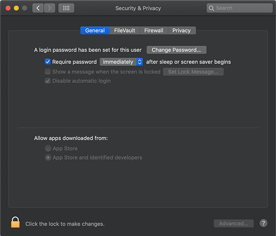 Fig. 2 -  Go to Security & Privacy S-> Security & Privacy -> General and unlock the lockpad to make changes