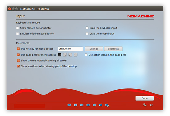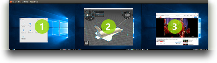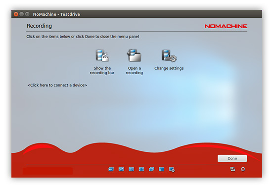 Record the content of the remote window whether it's a video/audio stream, or any other activity within an application on the desktop. Useful for creating presentations, making how-tos, or even capturing an annoying bug. The clips are saved on the local device you are connecting from in the NoMachine folder and can be opened using any player with WebM support or the NoMachine player itself.