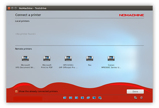 Provided you have a printer already configured on your local machine or remote host, you can choose to connect this printer to find it on the other side (local -> remote and vice-versa).