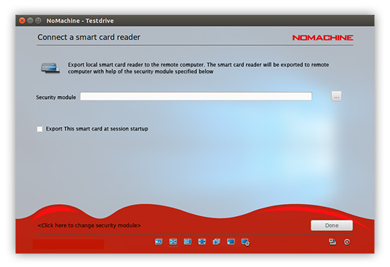 Client side By default, NoMachine's smart card service uses the libpkcs11 library to handle the devices. If you wish to provide your own library to do this process, specify the path to the desired module in the 'Security module' field in the GUI.