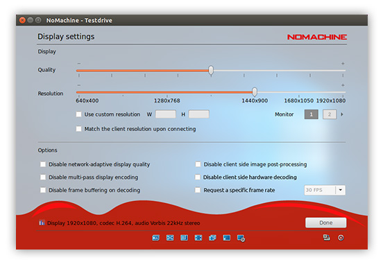 NoMachine performance has default settings which are suitable for most situations, but in some cases, such as in extreme network conditions or with particular applications, by adjusting the quality settings you can optimize your experience.