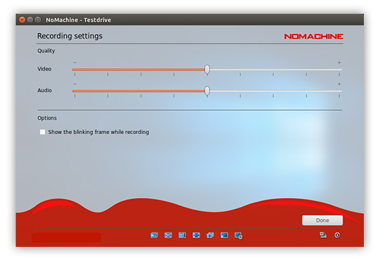 | when two or more users are sharing the same desktop and all are recording but with different quality settings, NoMachine will choose the lowest quality among them. To identify when recording is taking place, check the 'blinking frame' box. |