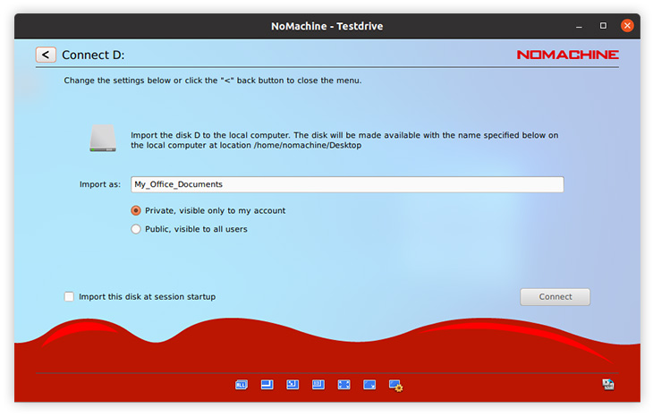 Upon closing the menu you will find this disk or folder in the location/path that was indicated in the dialog before clicking Connect e.g. /Users/nomachine (Fig. 6).