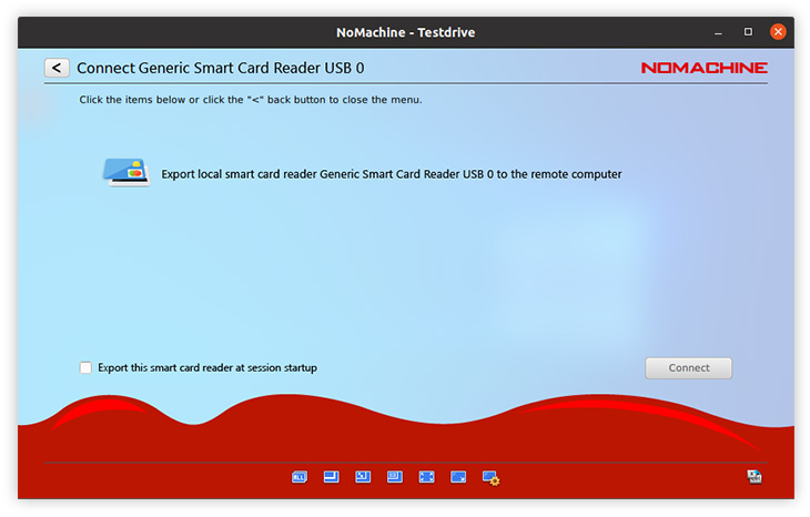 This service will make a smart card reader attached to the client (player) machine available on the server machine. Any application on the server that supports smart cards can be used just as if the reader was attached to the server machine. For example, a user can use the key stored on the card to authenticate to a server somewhere, or use it to digitally sign a document or e-mail. It is necessary to provide the path to NoMachine's libpkcs11.so library, where normally you would provide the path to your standard libopensc library.