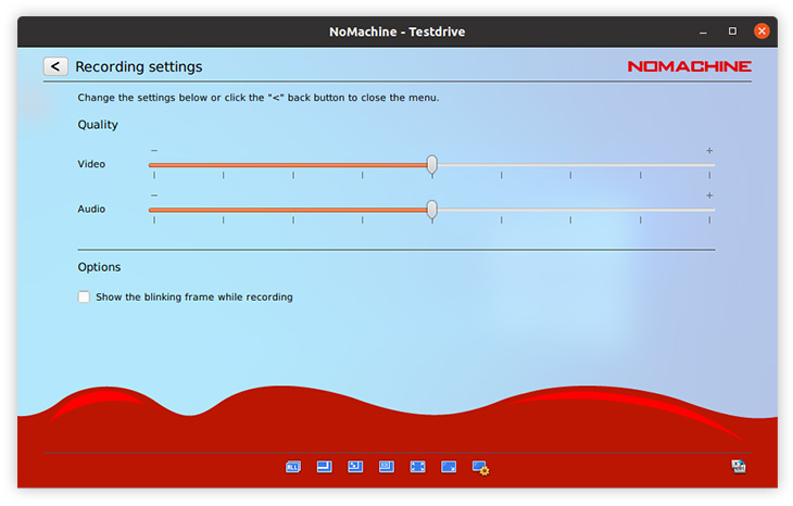 | When two or more users are sharing the same desktop and all are recording but with different quality settings, NoMachine will choose the lowest quality among them. To identify when recording is taking place, check the 'blinking frame' box. |